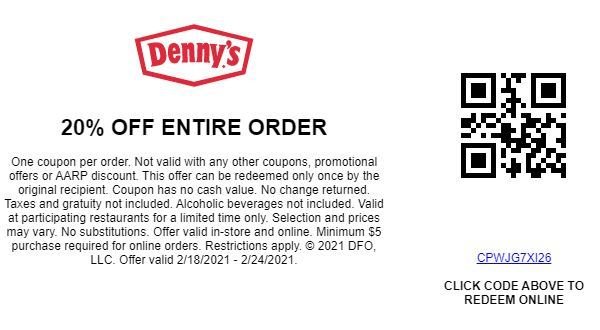 20% Off Entire Check at Denny's