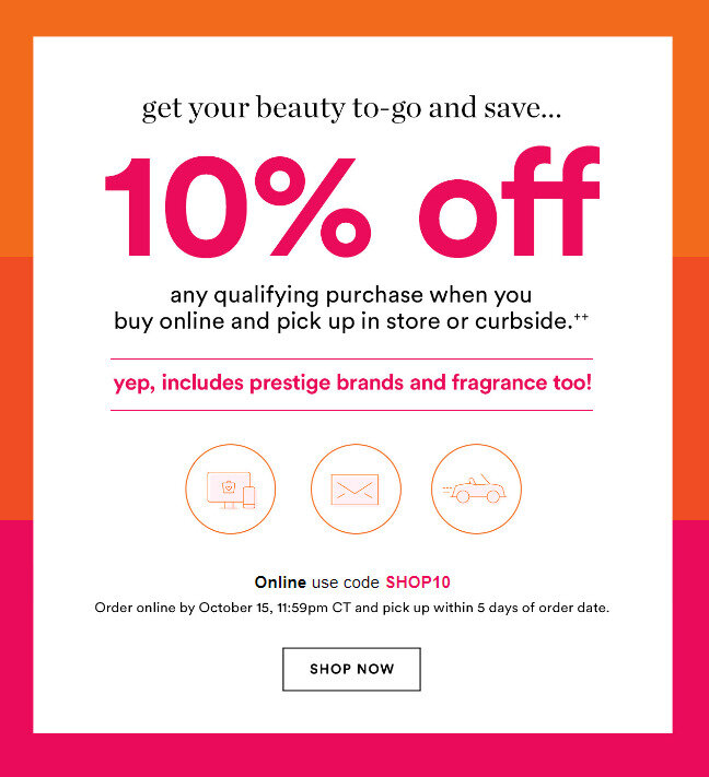10% Off Any Purchase When You Buy Online and Pick Up In-Store or Curbside online at ULTA