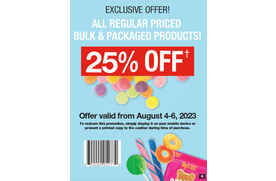 All regular Priced Bulk & packages Products 25% Off at Bulk Barn